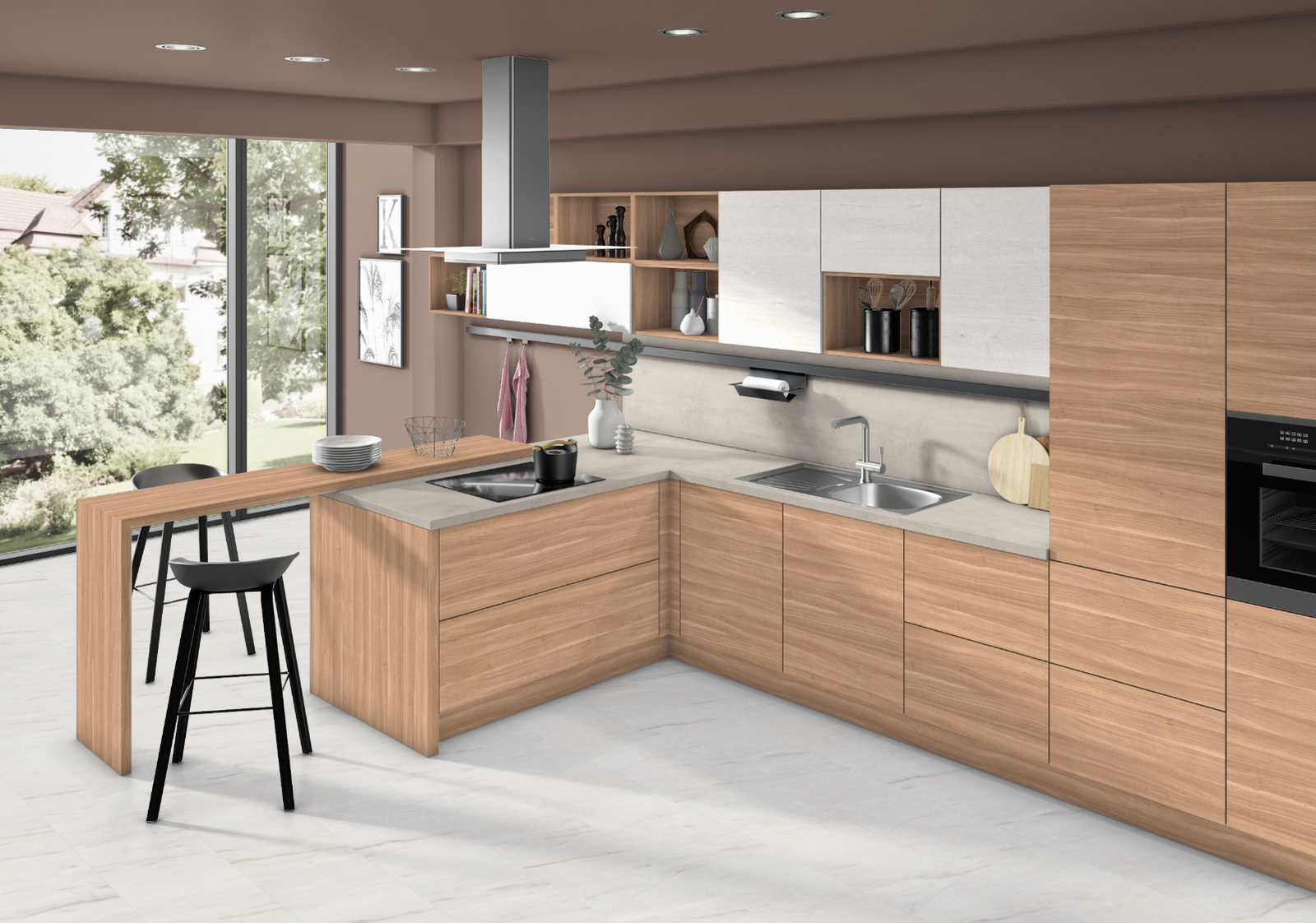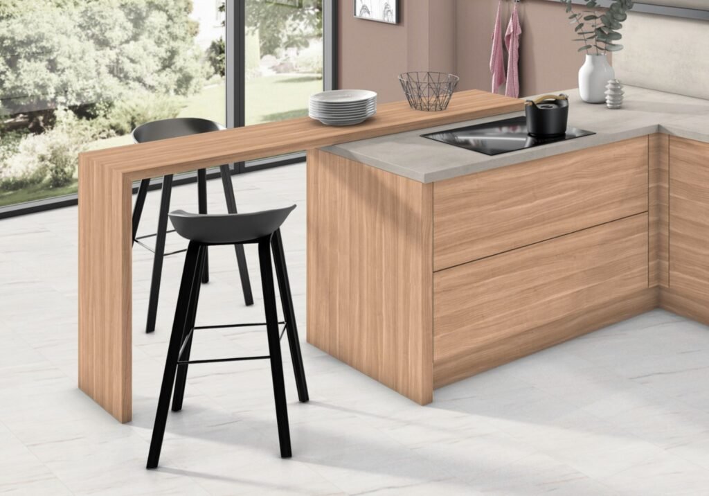 Parona Walnut, with itsribbons of latte brown heartwood, is a beautiful mid-tone wood for modern design. The appearance of this engineered materialseamlessly mimics natural wood, and its durable surface boasts stunning texture.